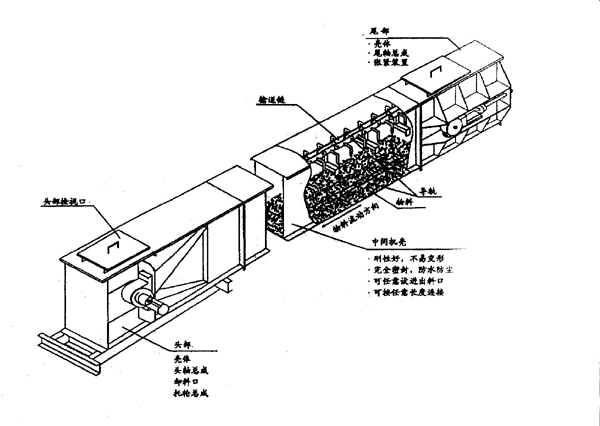 鏈?zhǔn)捷斔蜋C(jī),是引進(jìn)國(guó)外先進(jìn)技術(shù),并進(jìn)行了獨(dú)創(chuàng)性的改進(jìn)設(shè)計(jì)后制造出來的一種用于水平(或傾斜≤15°)輸送粉狀、粒狀物料的機(jī)械新產(chǎn)品,其使用性能優(yōu)于螺旋輸送機(jī),埋刮板輸送機(jī)和其它輸送設(shè)備,