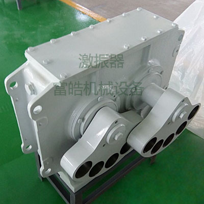 箱式激振器主要由箱體、齒輪、主動軸、偏心塊等組成。當(dāng)電動機(jī)通過傳動軸拖動箱式激振器,主動軸經(jīng)齒輪驅(qū)動沖動軸,使兩軸等速反向旋轉(zhuǎn),帶動偏心塊產(chǎn)生激振力,通過箱體傳遞給振動機(jī)械。箱式激振器的激振力為直線激振力,故也稱為直線激振器。