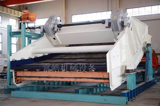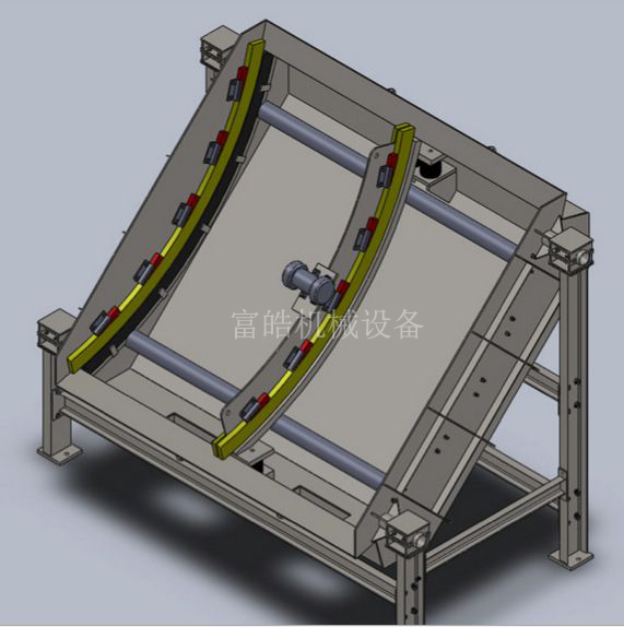 弧形篩主要由篩箱、篩網、激振器、減振彈簧和下座架等組成。香蕉篩是由電動機和激振器作為振動源,激振器主要是由偏心軸、皮帶輪、軸承及軸承座等組成,激振器安裝在篩箱側板上,并由電動機通過三角皮帶或軟連接與其相連,電動機帶動偏心軸旋轉,產生離心慣性力,迫使篩箱振動。